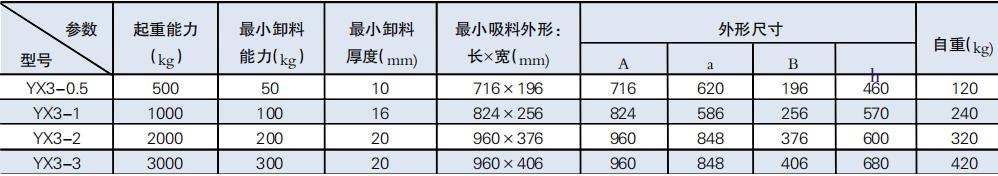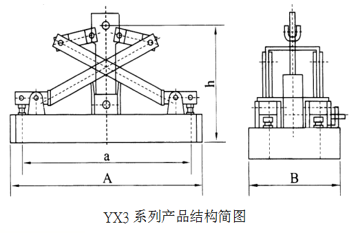 ★YX3 系列采用杠桿 / 頂桿式結(jié)構(gòu),手動(dòng)卸料,適用于多臺(tái)聯(lián)合吊運(yùn)長(zhǎng)而薄的鋼板。